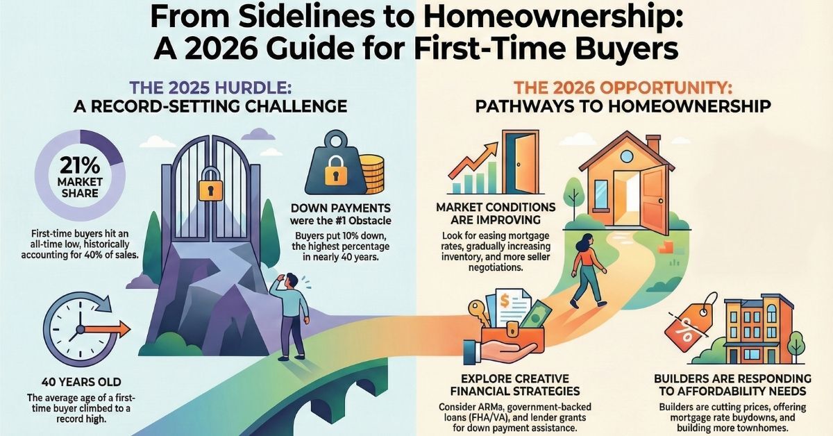 If you were a first time buyer trying to break into the market in 2025, you probably felt pretty frustrated. Home prices were climbing, mortgage rates stayed elevated, and a record number of would be buyers ended up sitting on the sidelines. High rents and student loans did not help either, so it is not surprising that many people felt left behind.